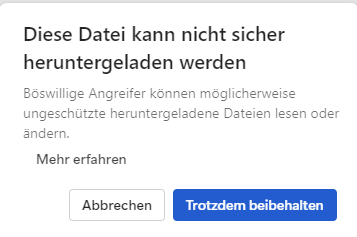 Wenn Ihr Browser beim Download den benötigten Objekt-Enabler als unsicher kennzeichnet, folgen Sie bitte diesen Schritten: