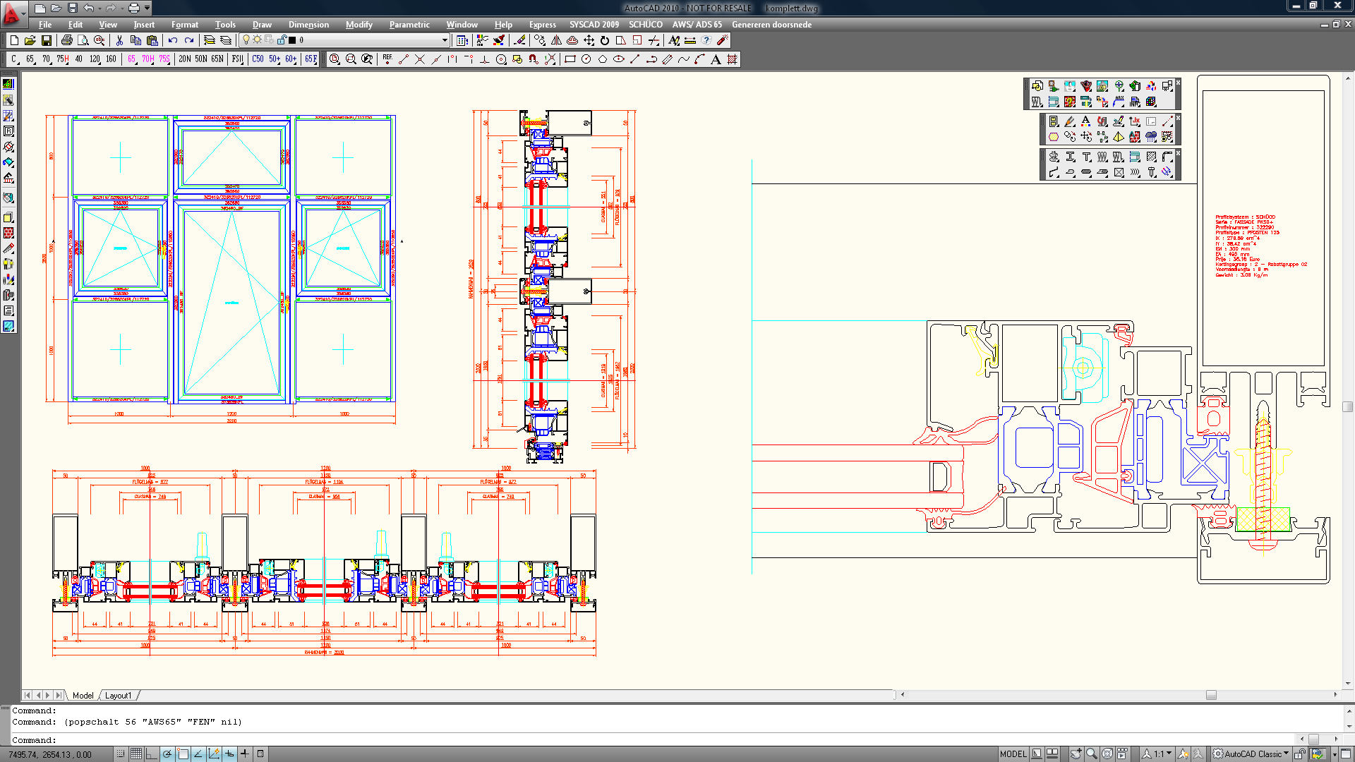 Aanzicht en doorsnedes van SCHÜCO FW 50+ met diverse inzetelementen - Gevelcad